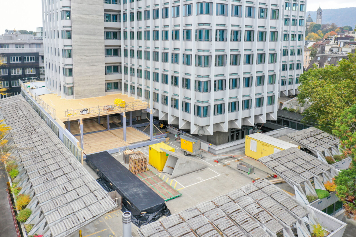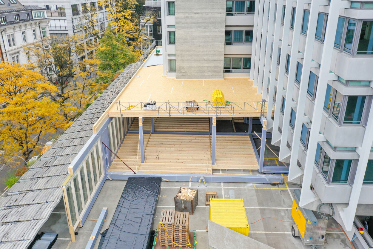 Dans le cadre d’un mandat global, une surélévation destinée à accueillir un restaurant provisoire est réalisée à Zurich ZH pour Swiss Life AG.