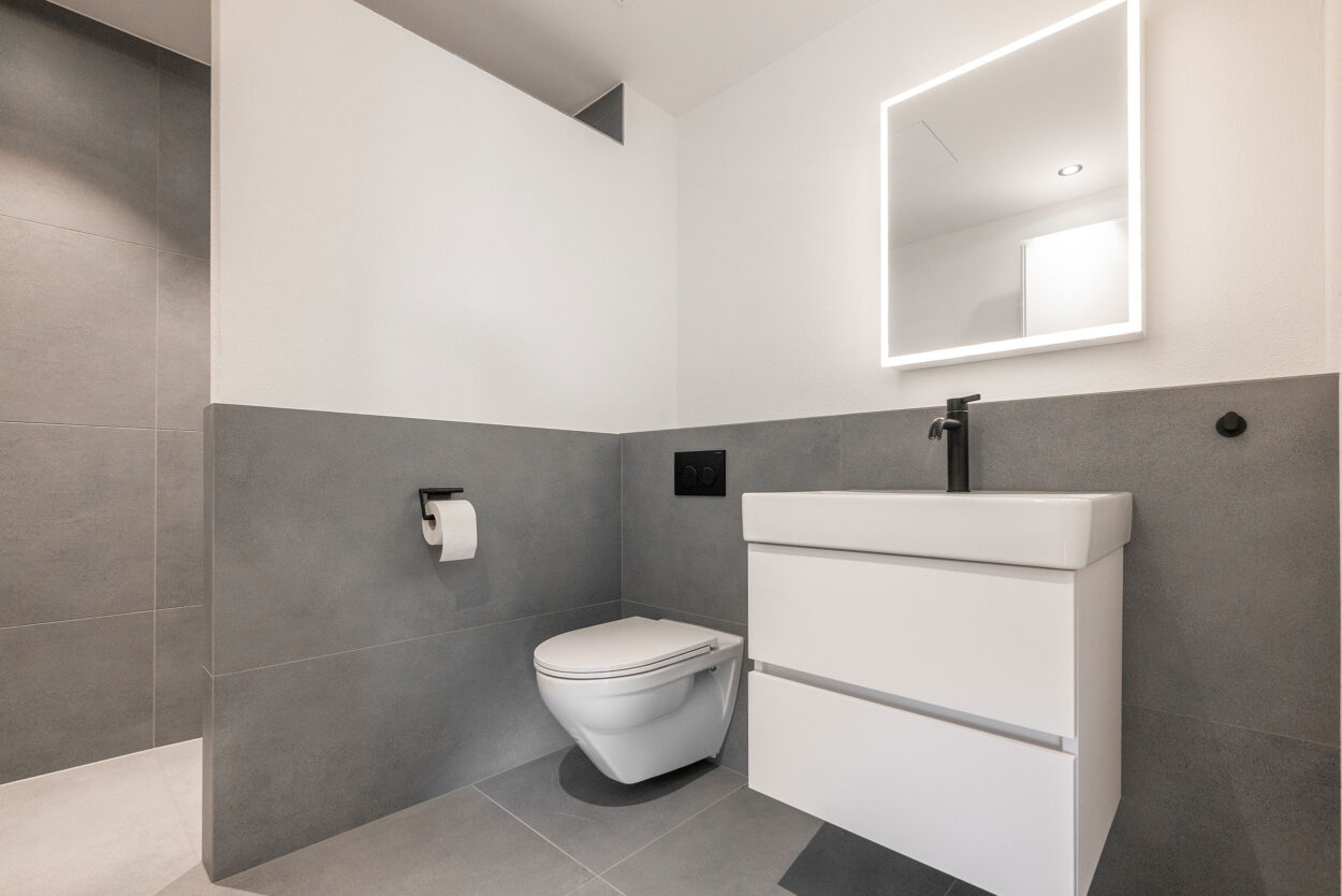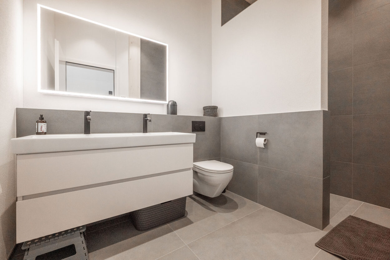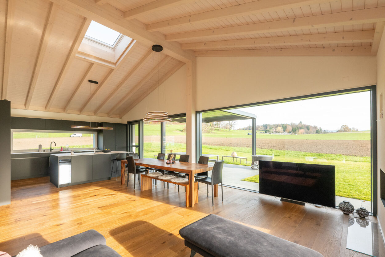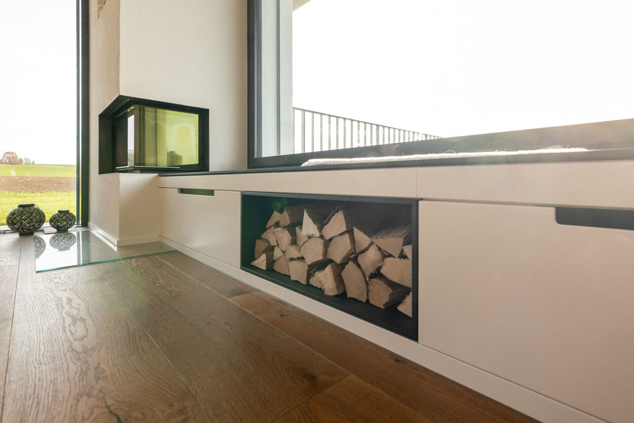 La reconstruction d’une maison individuelle datant des années 1970 comprend un appartement moderne de 5,5 pièces. Le bâtiment est situé en dehors de la zone à bâtir et a été réalisé en environ un an. Lors de la planification et de la réalisation, le maître d’ouvrage a pu bénéficier du savoir-faire complet et de la longue expérience de Strüby dans la construction de logements et de bâtiments agricoles. Les portes, les meubles de salle de bains, les penderies, les banquettes et les placards ont également été fabriqués par Strüby dans son propre atelier de menuiserie.