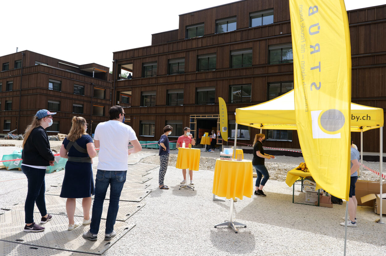 Noch vor dem Betreten des Gebäudes wurden die Besucherinnen und Besucher von den Mitarbeitenden der Strüby Unternehmungen freundlich und Covid-gerecht in Empfang genommen und ausführlich informiert. Höhepunkt des Rundganges war die Besichtigung einer komplett ausgebauten und möblierten Musterwohnung im ersten Obergeschoss. Diese vermittelte hautnah, wie es sich dereinst in einem der mit Schweizer Holz und in Minergie-A-ECO erstellten Mehrfamilienhäuser wohnen und leben lässt.