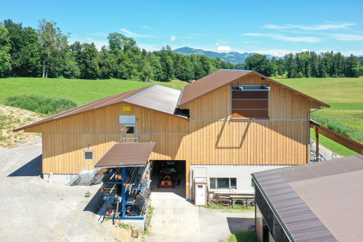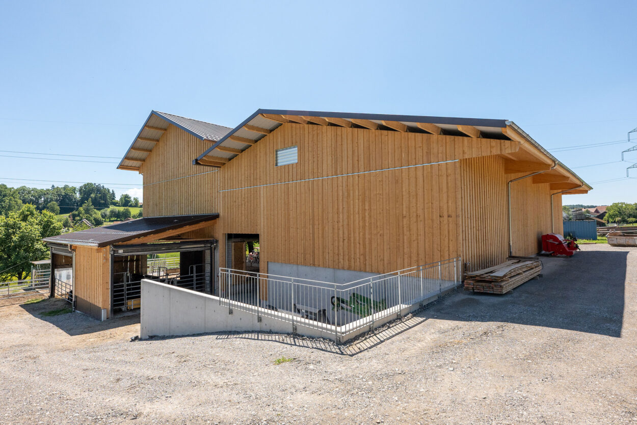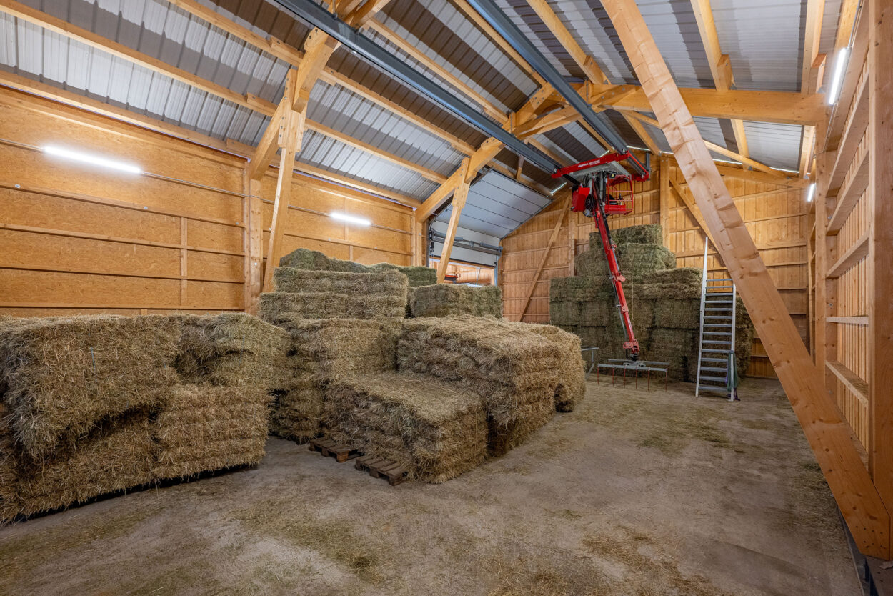 Bei diesem bestehenden Landwirtschaftsbetrieb, der strengen Auflagen zum Moorschutz unterliegt, wurde ein Anbau und Ersatzaufbau zur Lagerung von Heu und Stroh realisiert. Die Heutrocknung erfolgt dabei dank der Nutzung der Dachwärme sowie des optionalen Einsatzes eines Kondensators besonders energieeffizient.