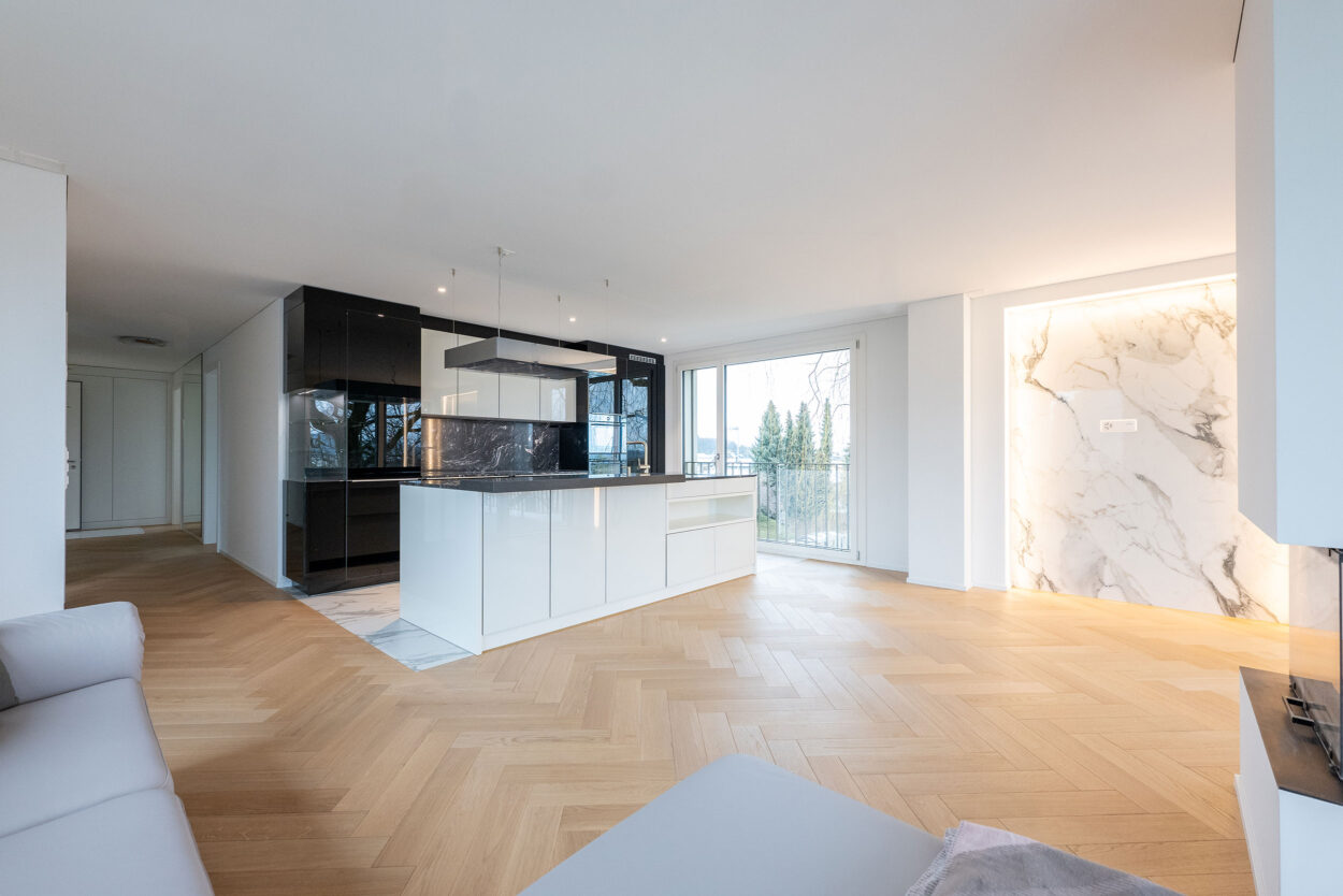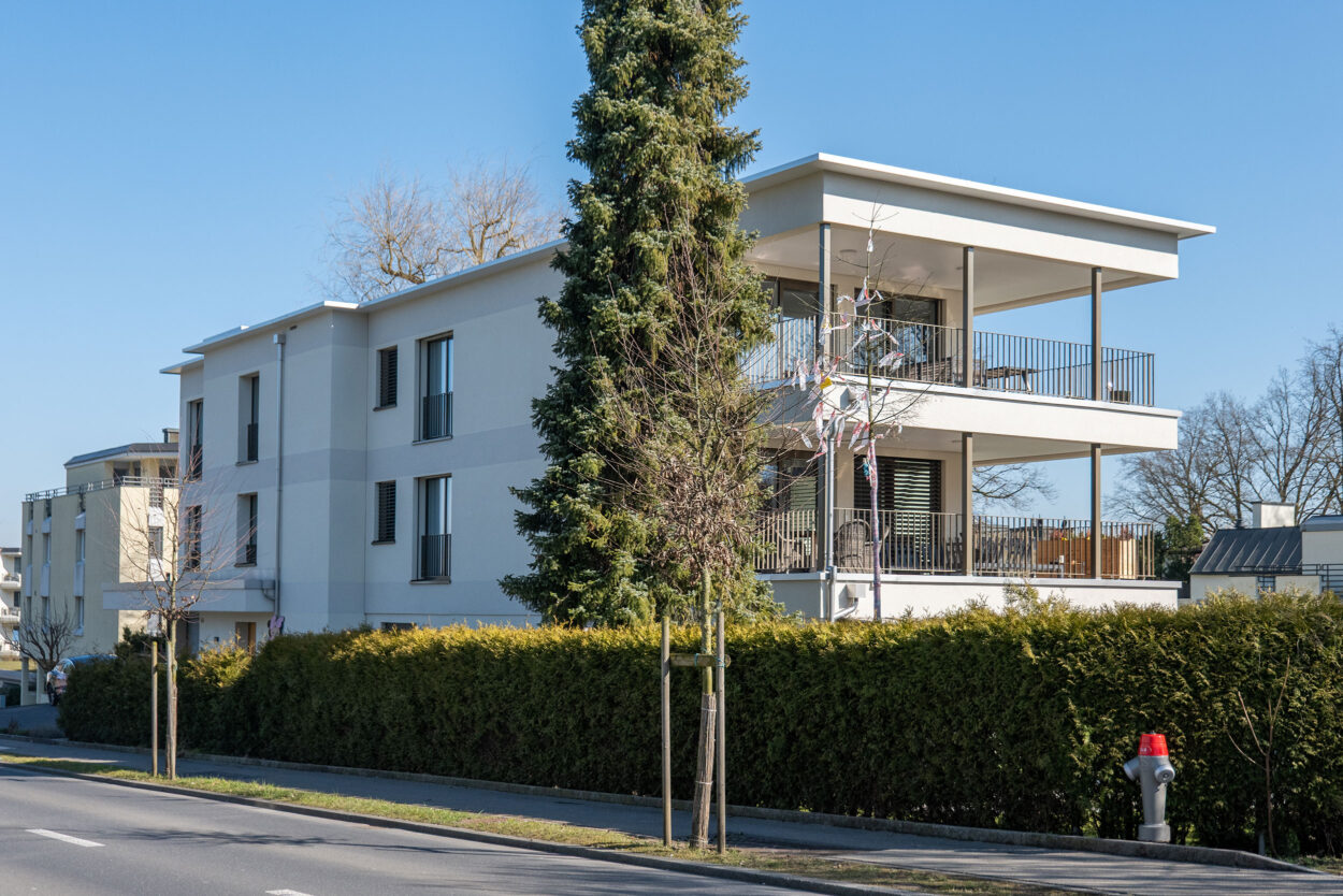 Ein weiteres, sehr schönes Beispiel, wie mittels Aufstockung und eines Anbaus ein bestehendes Einfamilienhaus sinnvoll erweitert werden konnte, um neu als modernes Mehrgenerationenhaus genutzt zu werden. Dazu wurde das Obergeschoss zuerst rückgebaut und durch zwei neue Stockwerke in Holzelementbauweise ersetzt. Darin fanden neu je zwei gehobene 4.5 sowie 5.5 Zimmer Wohnungen Platz, die mit einem Personenlift erschlossen sind. Die bestehende Erdgeschoss-Wohnung wurde um die Fläche des Anbaus erweitert.