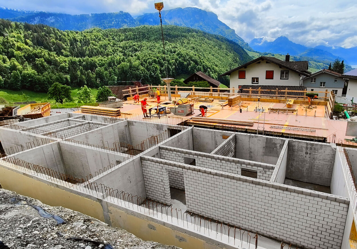 Im Rahmen eines Gesamtleistungsauftrages werden in Rickenbach SZ zwei Mehrfamilienhäuser realisiert.