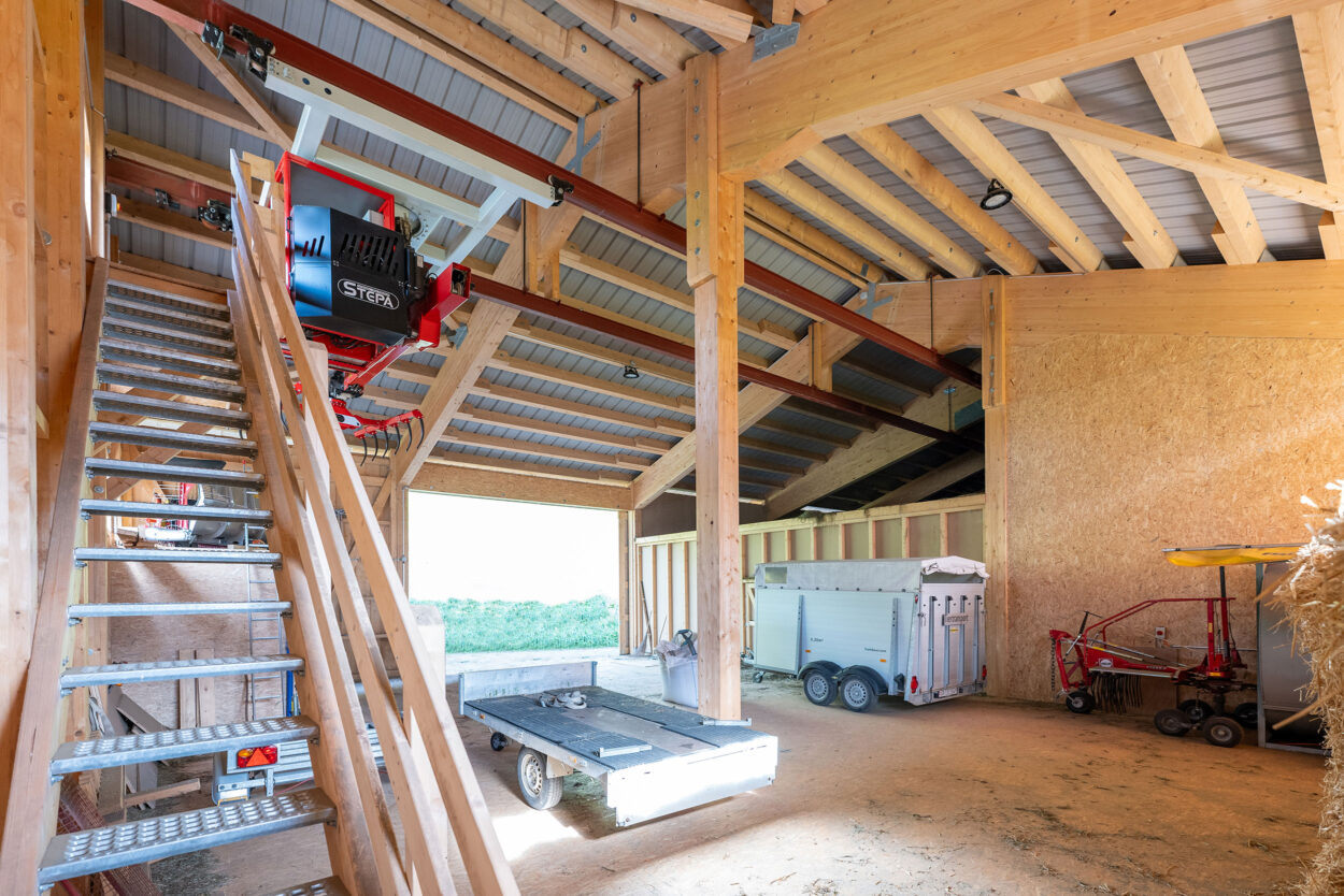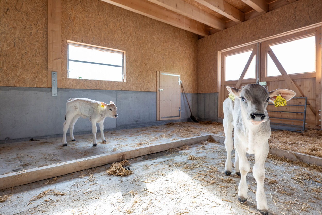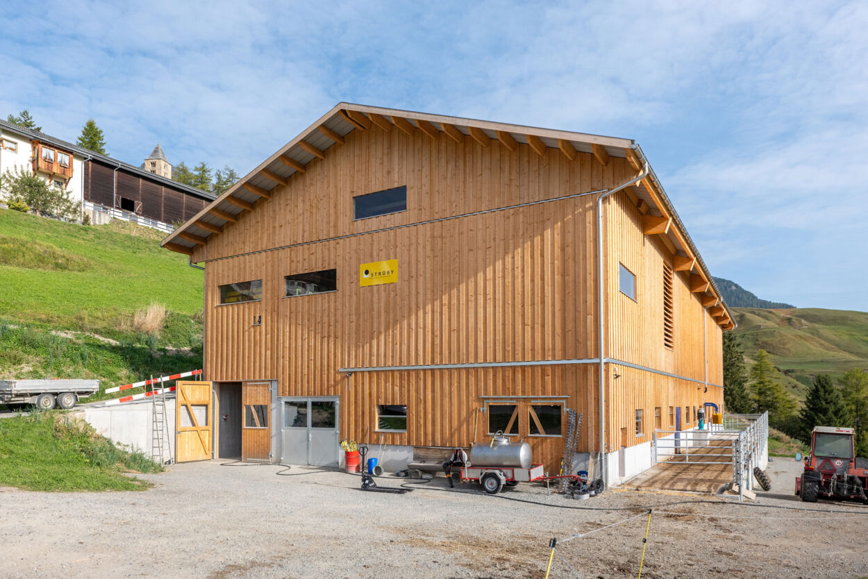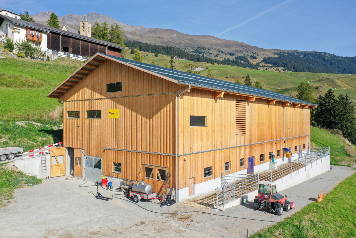 Der Bau dieses Milchviehstalls wurde im Rahmen einer Gesamtleistung realisiert. Der Neubau misst rund 37 mal 16 m, bietet 46 Tieren Platz und verfügt im Obergeschoss unter anderem über ein 1481 m² grosses Futterlager.