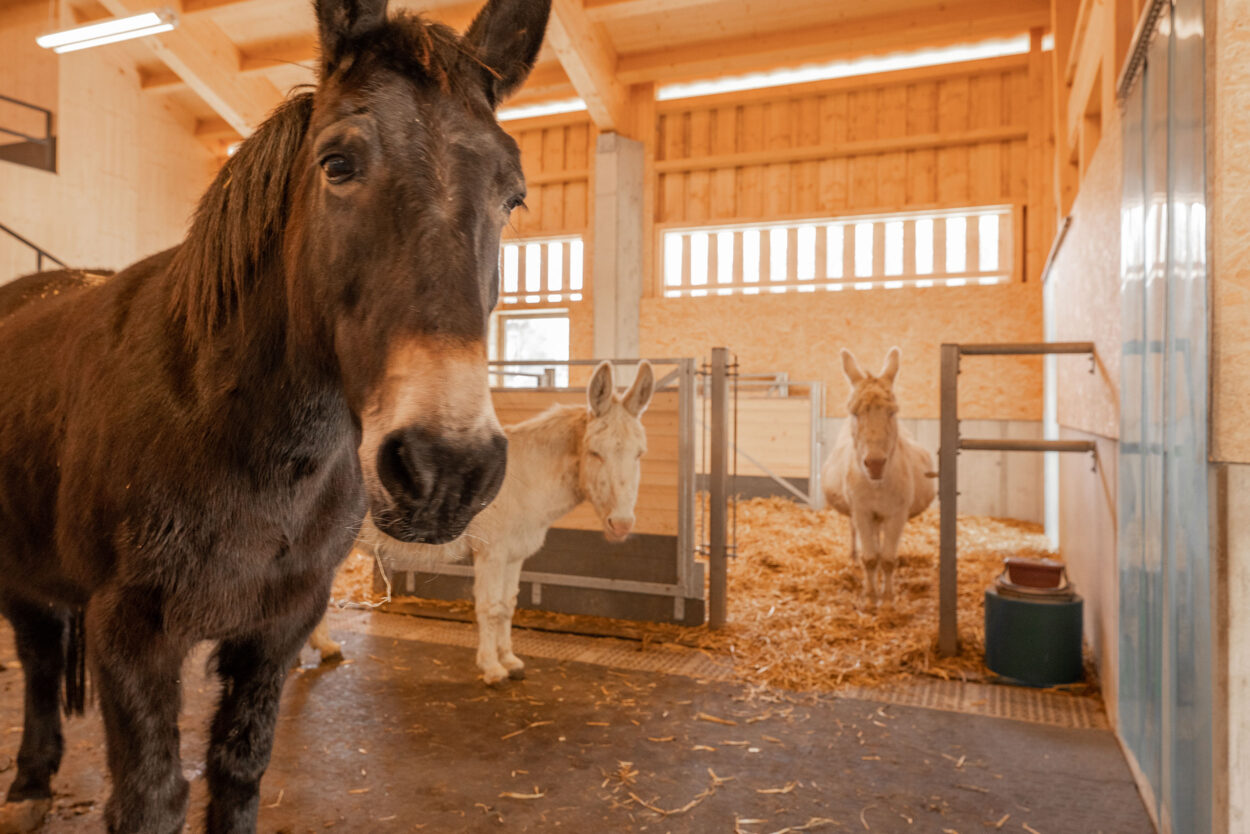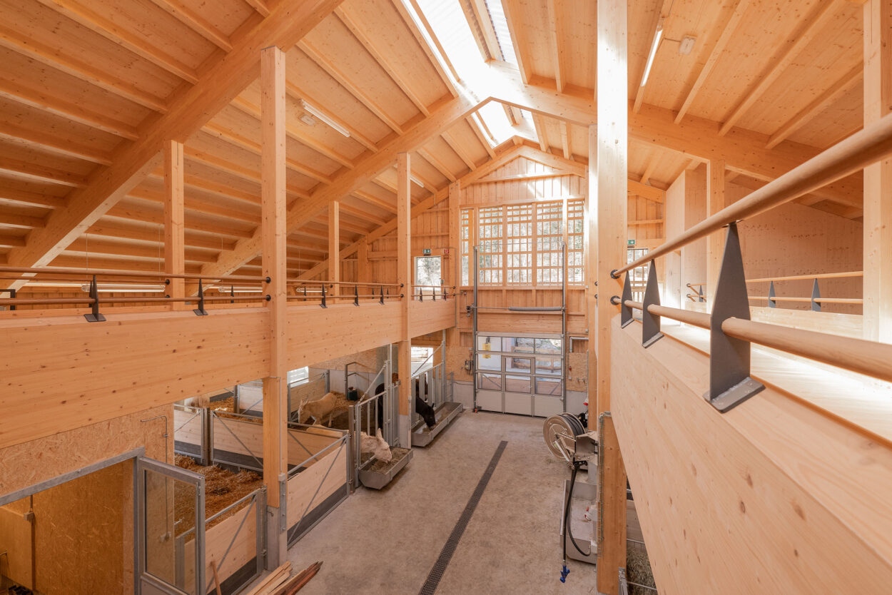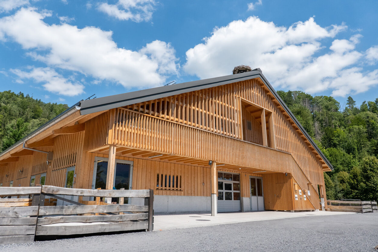 Das moderne Ökonomiegebäude mit angegliedertem Bauernhof wurde mit einheimischem Holz erstellt. Im neuen Zuhause für verschiedene Nutztierarten erhalten die Besucherinnen und Besucher des Natur- und Tierparks Goldau auf einer begehbaren Galerie spannende Einblicke in die Tierhaltung. Ein Ausstellungs- und Schulungsraum ergänzt den Neubau.